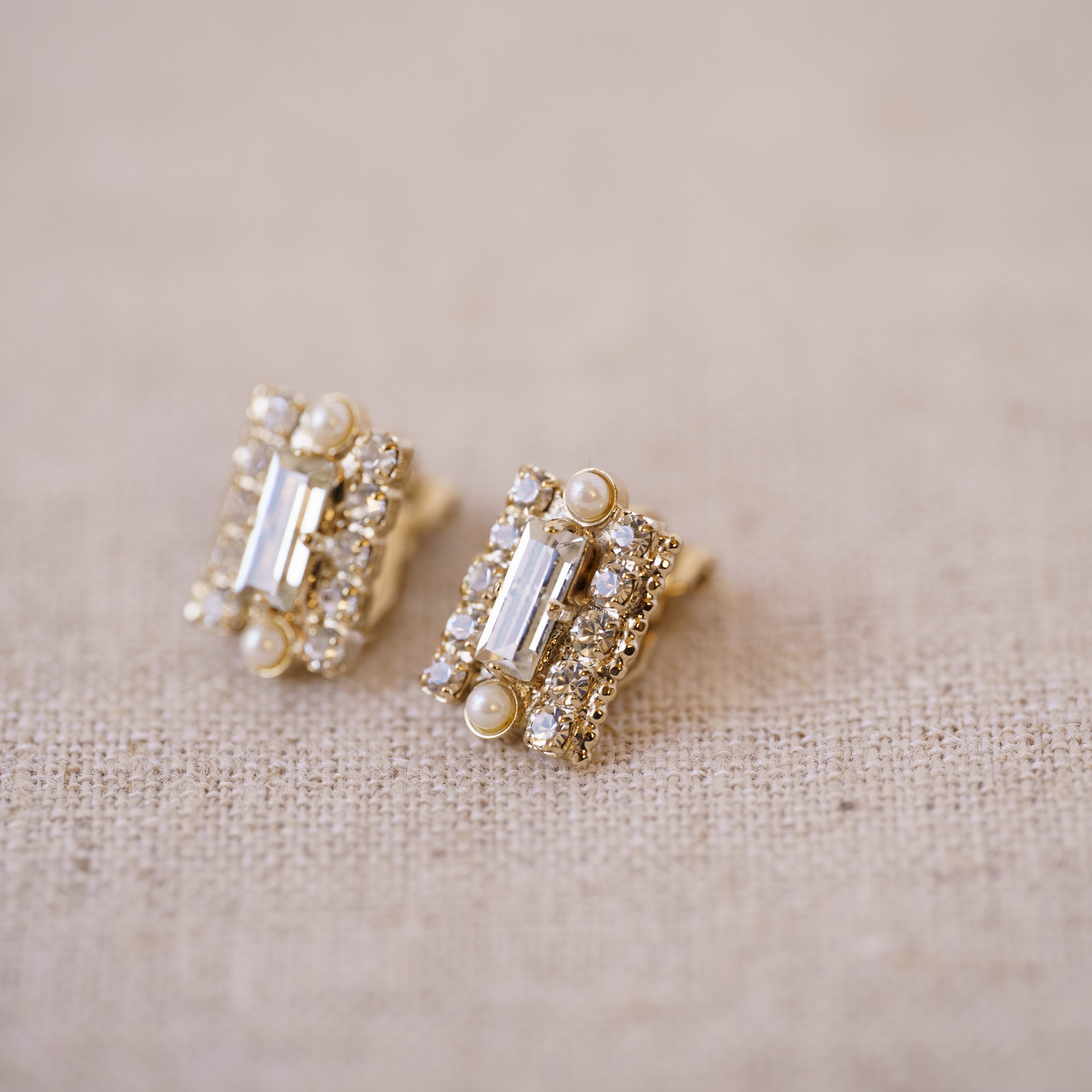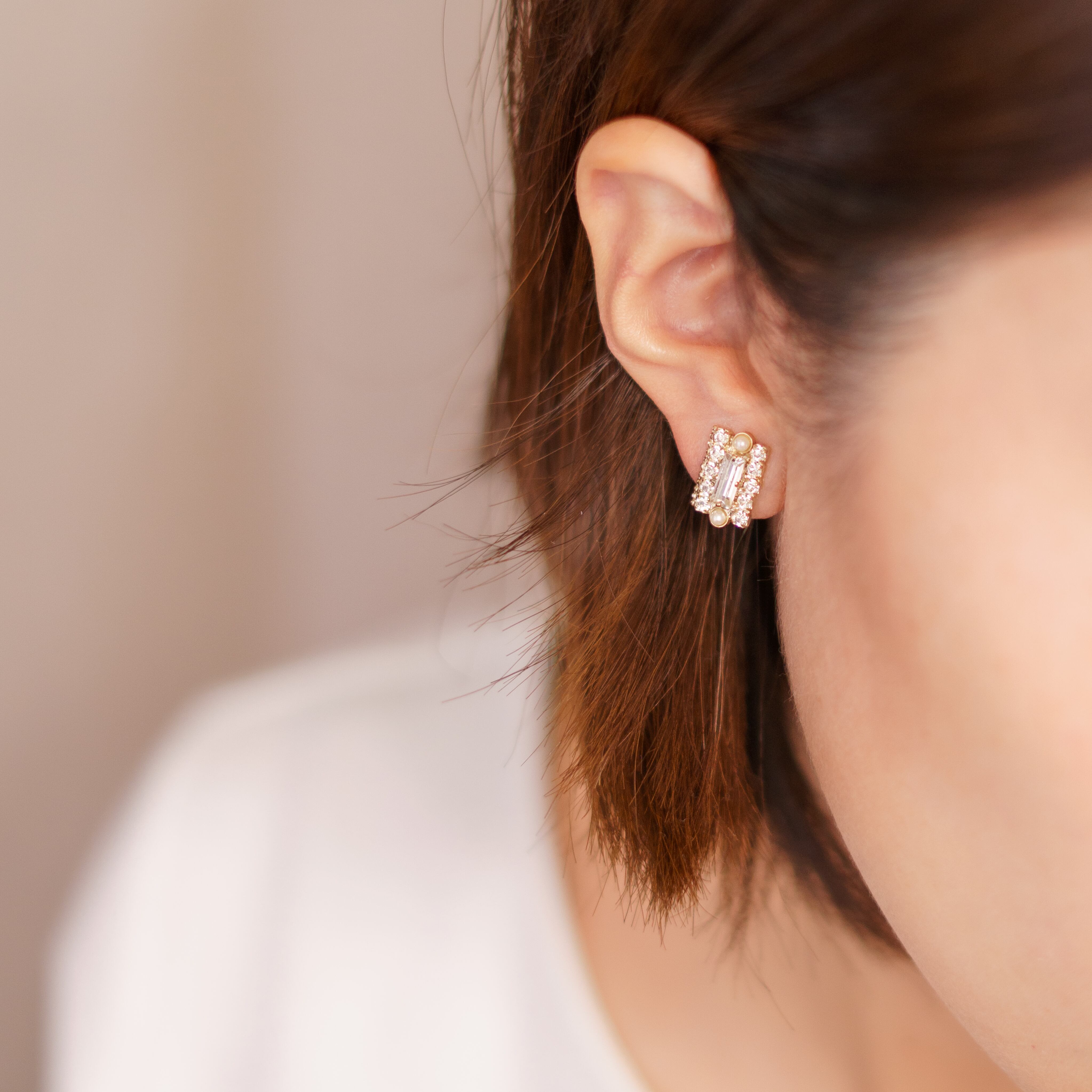 丁寧にカットされたガラス、極小のラインストーン、そしてパールが織り成すエレガントなフォルムが特徴的なヴィンテージイヤリング。ラインストーンの優しいきらめきと、パールのマットな質感が絶妙に調和し、気品あふれる仕上がりに。タイニーなシルエットが顔まわりにさりげなくエレガンスをプラスし、シンプルながらも存在感があります。どんな装いにもすっと馴染み、上品なアクセントを加えてくれるこのイヤリングは、日常使いにも特別な日にもぴったりです。