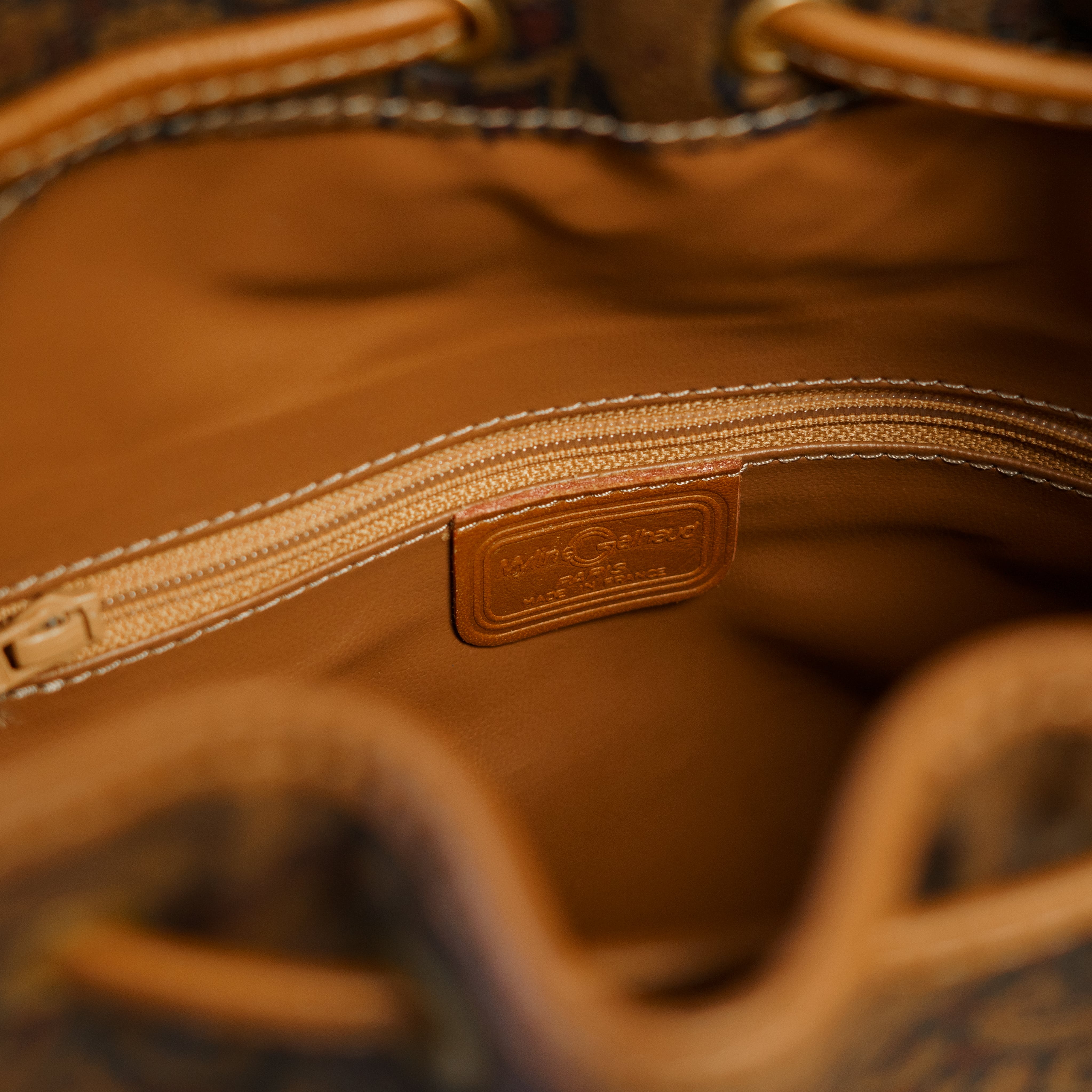 Crafted from elegant, high-quality matte brown leather, this drawstring-style shoulder bag features a warm paisley pattern that adds a retro elegance to its classic design. The meticulous craftsmanship by French artisans shines through, imparting a sense of refined beauty. This bag serves as an eye-catching accent, perfectly complementing everything from classic outfits to casual denim looks.