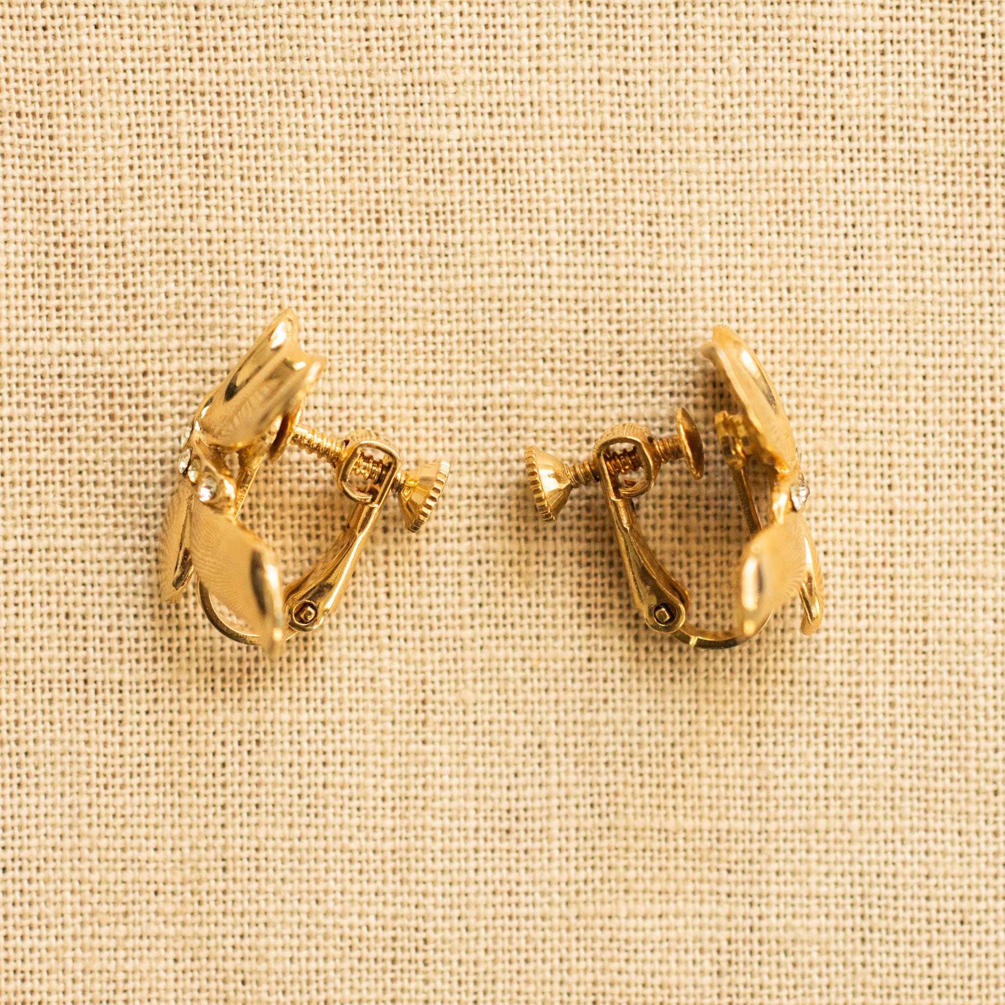 Gracefully asymmetric, these vintage bow-motif earrings bring an air of elegance with their sculptural curves and fluid form. A delicate rhinestone accent adds a subtle sparkle, enhancing the artistic movement of the design. While bow motifs have surged in popularity in recent years, this piece represents an original interpretation—true vintage craftsmanship at its finest. Balancing femininity with a refined, metropolitan edge, these earrings offer a timeless take on a beloved motif.