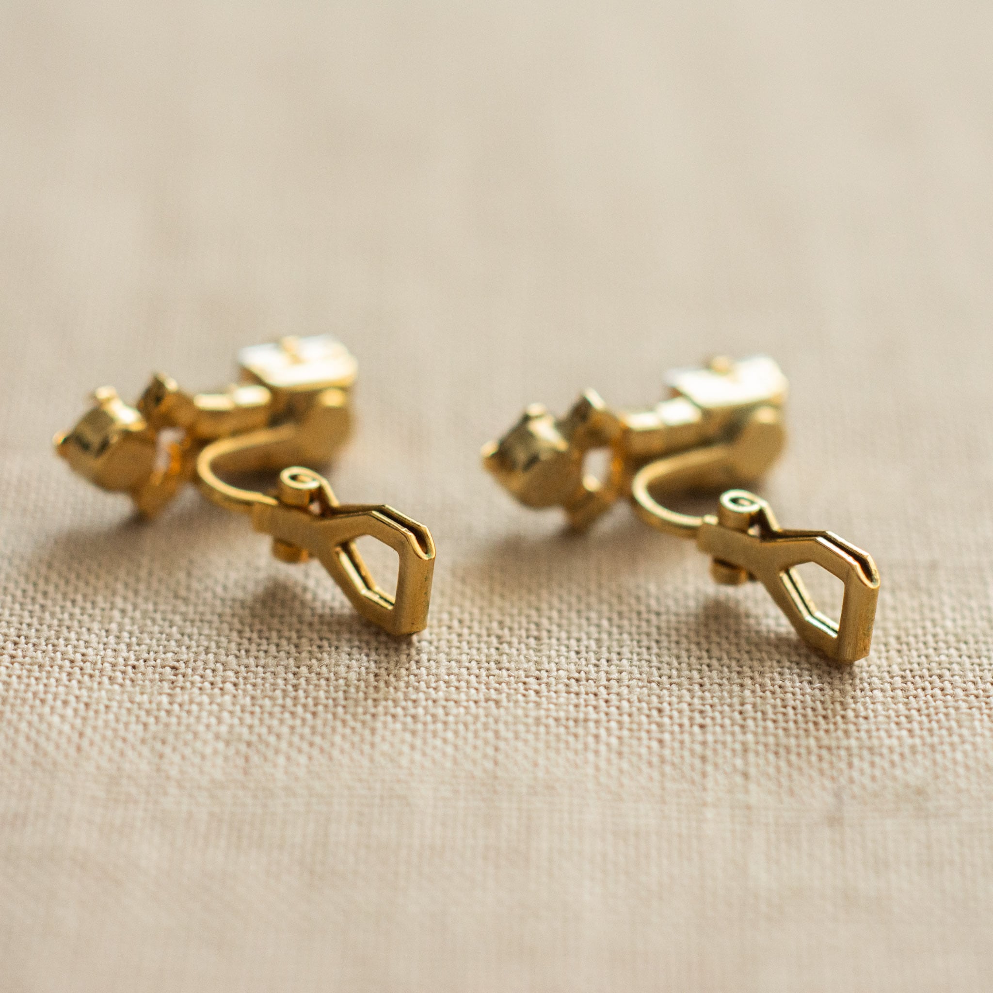 多面的にカットされた上質なカラーガラスが、繊細なきらめきを放つヴィンテージイヤリング。控えめなサイズ感ながらも、リュクスな素材と洗練されたデザインが、静かな存在感を演出します。光を受けるたびに生まれる陰影が、顔まわりをやさしく照らし、上品なニュアンスをプラス。オケイジョンなどのフォーマルなシーンにはもちろん、エブリデイのデニムスタイルとも自然に馴染み、さりげないエレガンスを添えてくれます。ひとさじの甘さと緊張感を加えたいときに、心強いアイテムです。